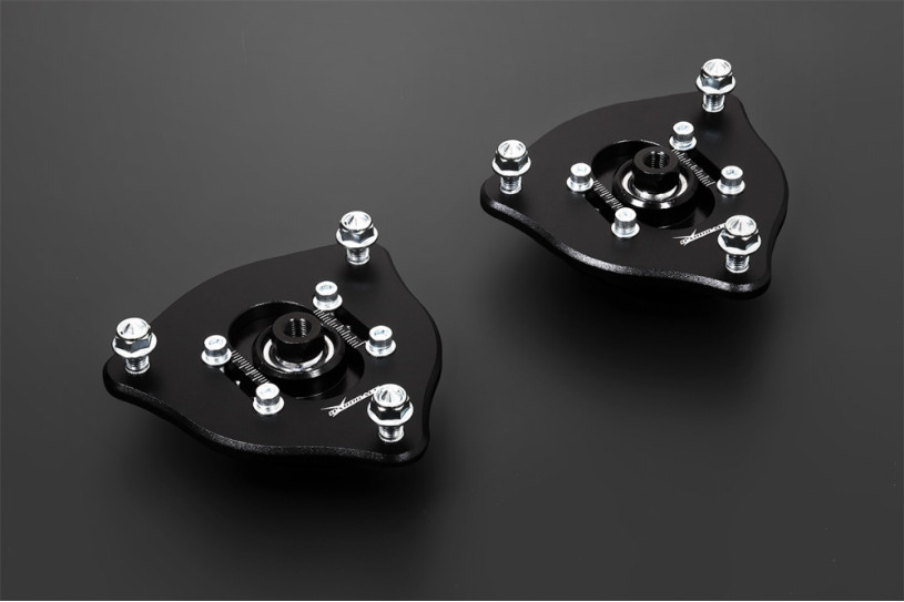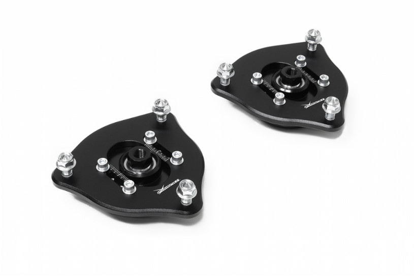 Hardrace adjustable strut mounts provide a quick and easy way for optimum camber adjustment through the top plate. They utilize CNC machined billet aluminum housings for superior strength but remain lightweigt. The intergrated premium quality pillow ball bearings help eliminate any unwanted compliance on the top mount under aggressive driving conditions, resulting more precise and solid handling response and improved traction over the factory rubber pieces, prefect upgrade for track and high-performance use.