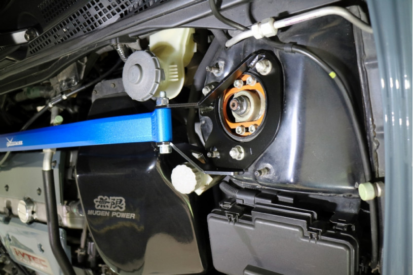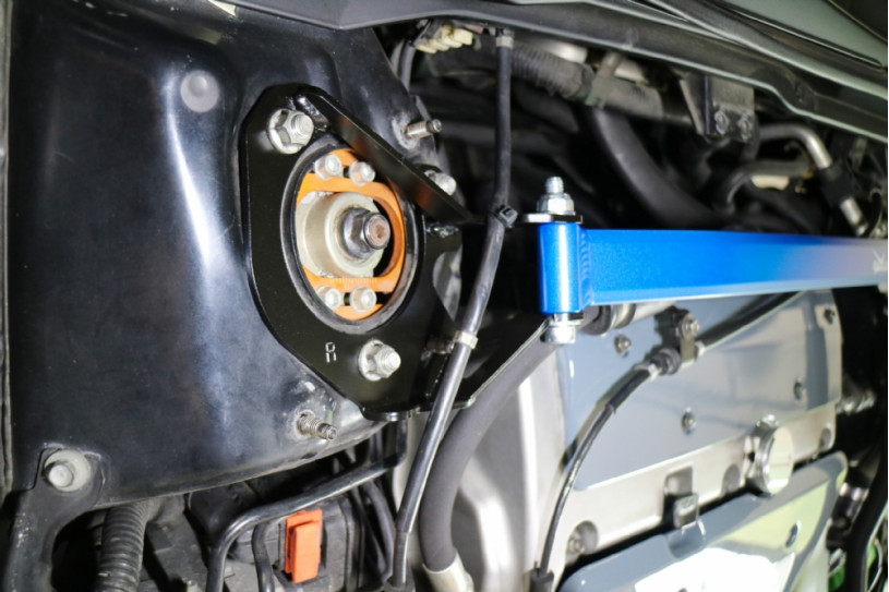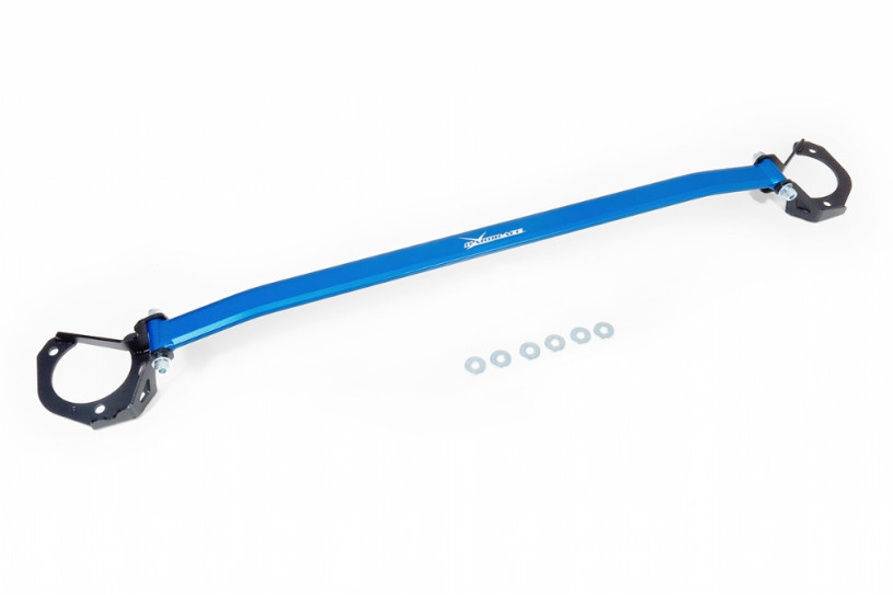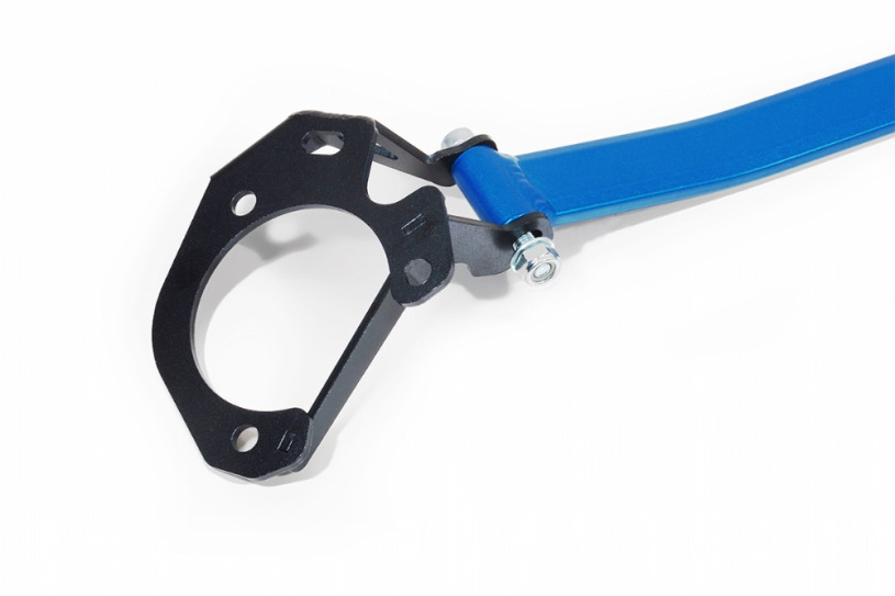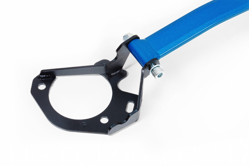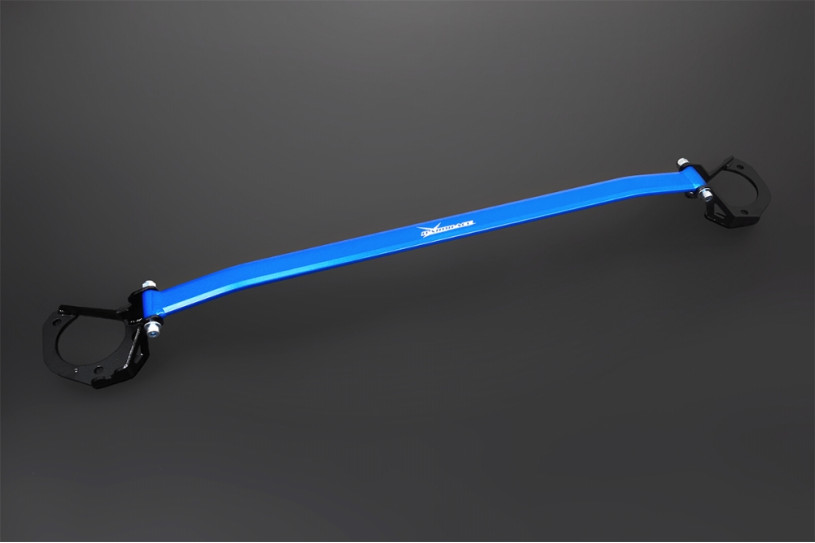 The front strut brace features aluminum alloy center bar for extreme lightweight and superior strength. By tying the strut towers together, the brace capably eliminate lateral body deflections and maintain proper suspension geometry under high speed driving and hard cornering, offering a more precise and connected handling response.