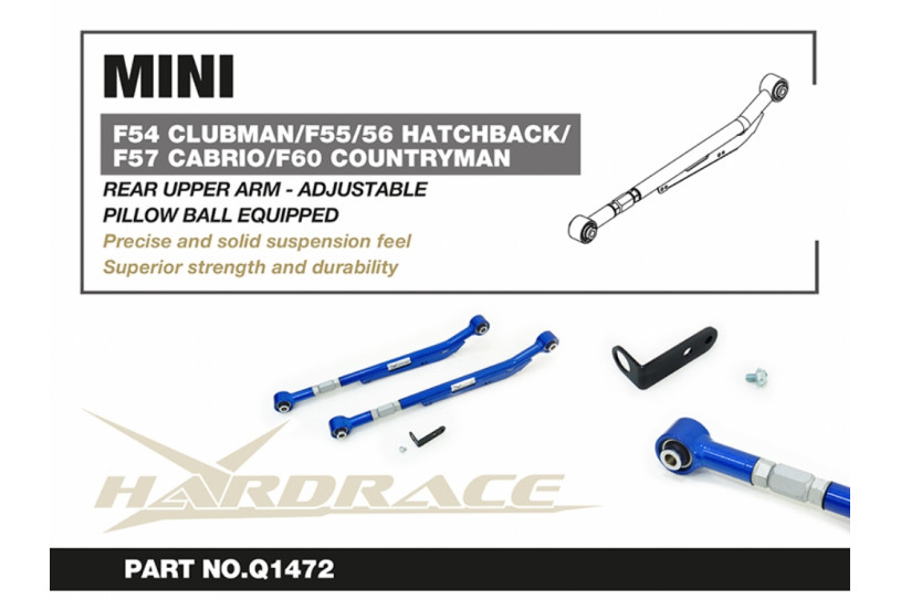 BMW 1 Series F40/F70, X1 F48/F49/U11/U12, 2 Series F45/F46/F44/F74/F78 Gran Coupe/U06 Active Tourer, X2 F39/U10, Mini Cooper F55/F56, Hatchback F65/F66, Clubman F54, Cabrio F57/F67, Countryman F60/U25 Rear Upper Arm Hardrace Q1472