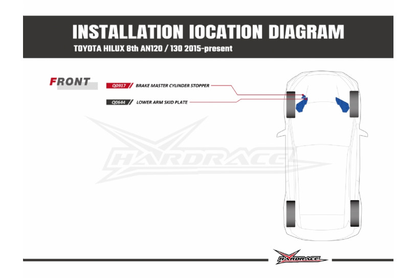Hardrace is proud to announce the brake master cylinder stopper for Hilux. It reduces deflection at the firewall during heavy braking, making the brake pedal feel stiffer and more responsive.