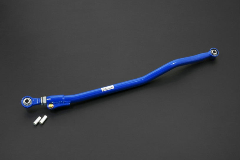 Track bar controls lateral movement of the axle housing. Once the car is lifted, the added height will throw off the alignment of the track bar, shifting the axle to one side. Adjustable track bars allow you to re-center the axles and keep the vehicle tracking straight down the road. Hardrace track bars feature high strength steel tube construction to withstand harshest off-road conditions. It also equipped with pillow ball bushings to offer both great ride quality and articulation, allowing you to tackle tough terrain.