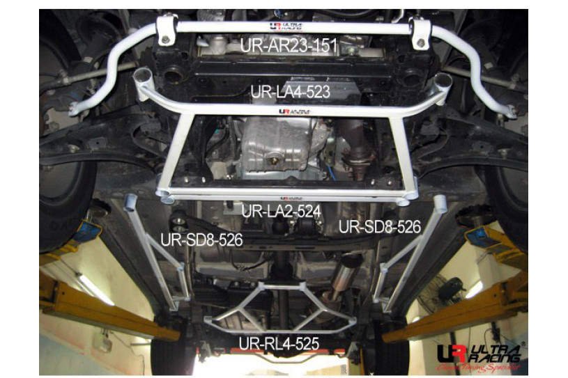 Test cars with installed Ultra Racing’s Front Strut Bar and Rear Anti-roll Bar and without.