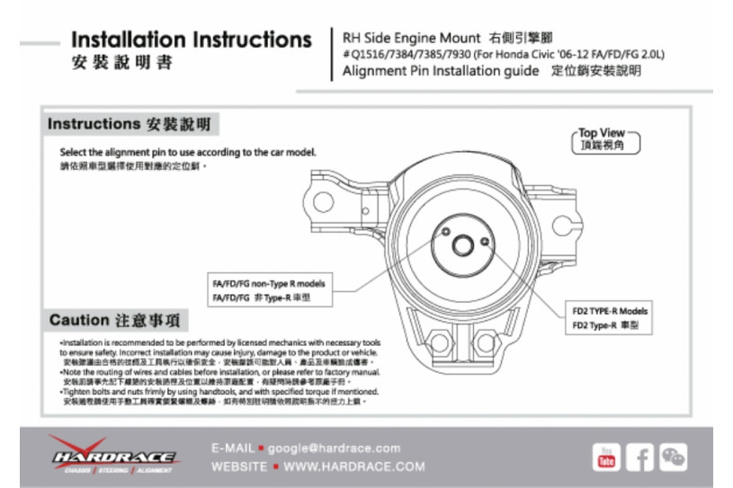 Harden Engine Mount Honda Civic Fd Hardrace 7385 - Installation Guide.