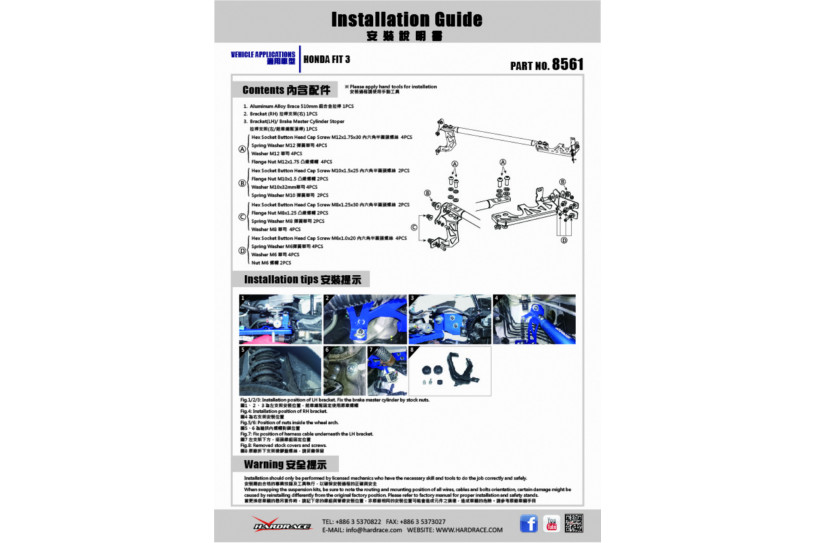 Front Strut Bar Honda Fit/Jazz Gk3/4/5/6 Hardrace 8561 - Installation Guide.