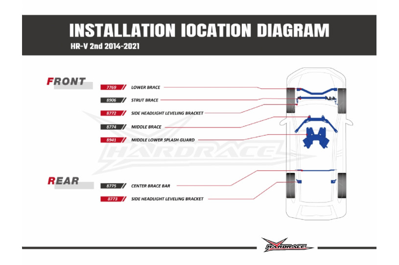 For anyone who's lowered your HR-V / VEZEL, you won't have failed to notice that the headlight beam seems shorter and allows you to see less up ahead. Obviously, due to the car being lower, the lights are lower too. So the beam isn't shining so far ahead as it's now lower to the ground. HARDRACE headlight leveling bracket of HR-V / VEZEL can easily replace the OE ones to adjust your headlights to point up a bit more and get back to the correct height.