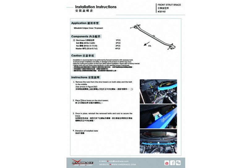 Hardrace Q0162 Front Strut Brace Mitsubishi Eclipse Cross - Installation Guide.