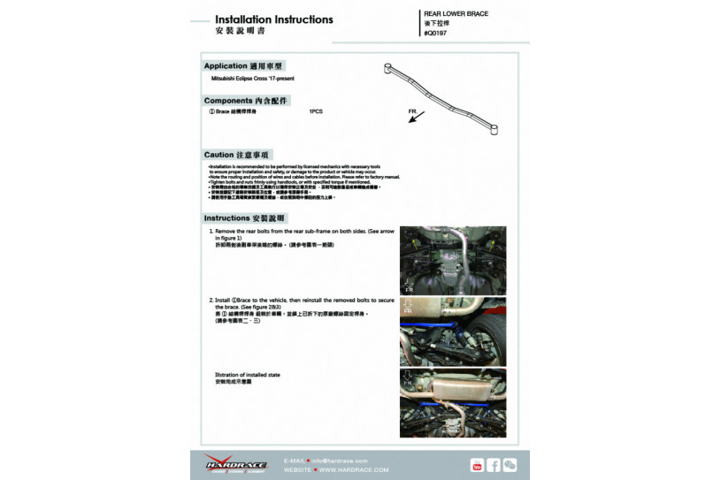 Hardrace Q0197 Rear Lower Brace Mitsubishi Eclipse Cross - Installation Guide.
