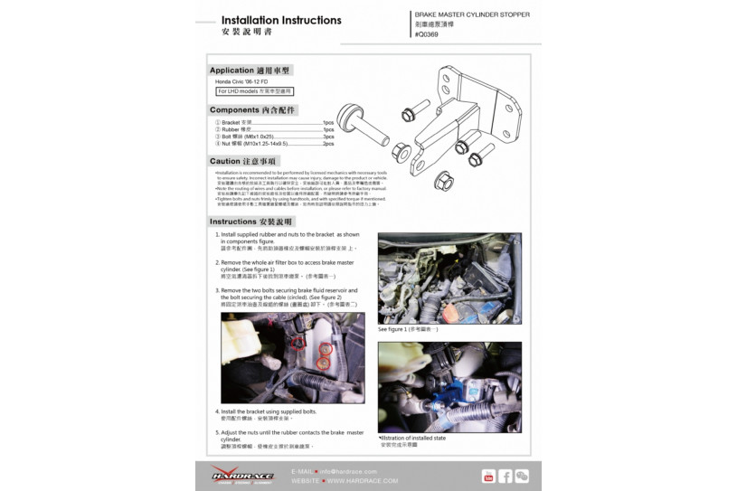 Brake Master Cylinder Stopper Honda Civic 8th Fd Hardrace Q0369 - Installation Guide.