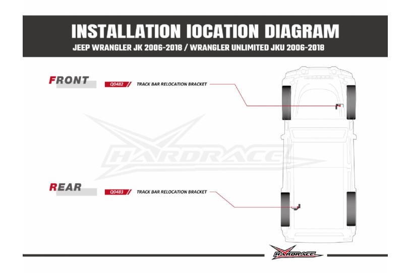 Front Track Bar Relocation Bracket Jeep Wrangler Jk Hardrace Q0482 - Installation Guide.