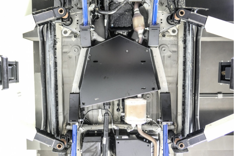 Hardrace transfer box skid plate offers ultimate underbody protection to your Jimny. The shields are constructed from high strength steel with ED coating to provide superior strength and durability, preventing damages to transfer case while off-roading. The shield and brackets bolt into existing factory bolt holes and there is no cutting or welding required for installation.