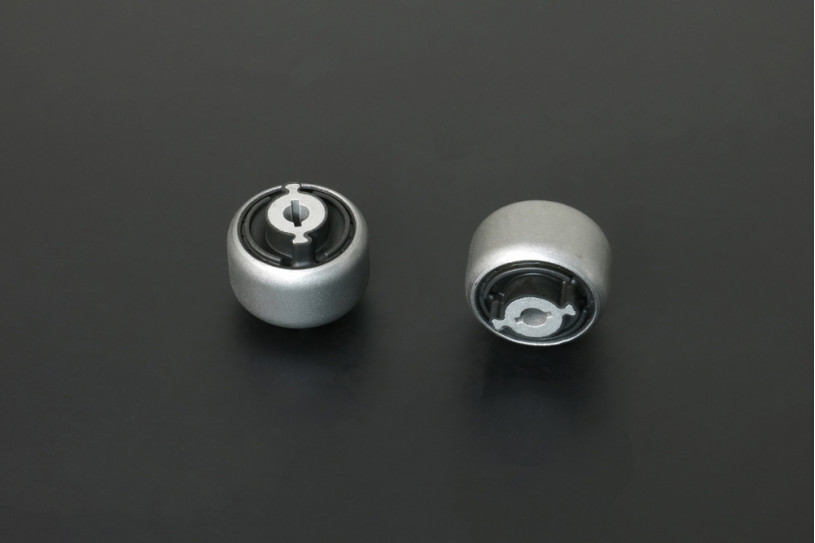 The harden rubber bushings are made of high strength and anti-crack rubber materials to offer solid handling response and resistance to unwanted suspension movement during hard acceleration, braking and cornering.