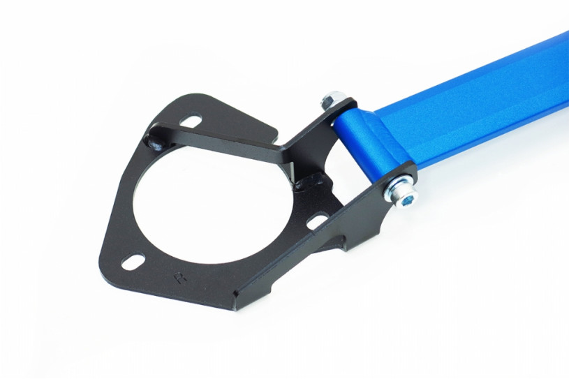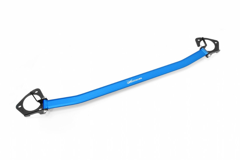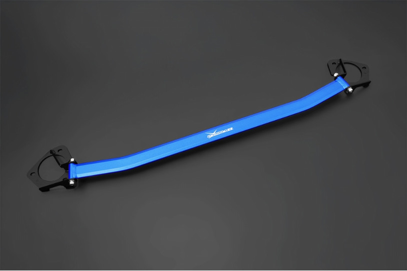 The Hardrace front strut brace features aluminum alloy center bar for extreme lightweight and superior strength. By tying the strut towers together, the brace capably eliminate lateral body deflections and maintain proper suspension geometry under high speed driving and hard cornering, offering a more precise and connected handling response.