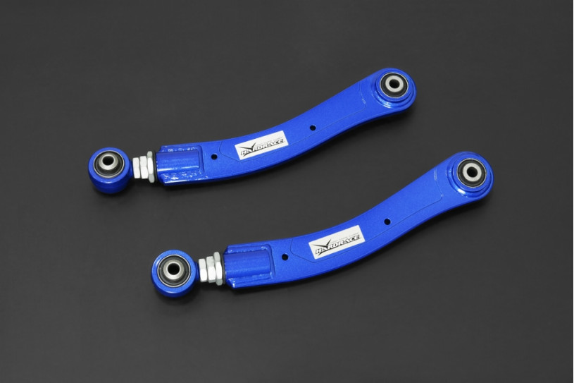 The camber kit allows fine adjustments to the rear end camber setting of the vehicle. It can either help maximize wheel contact patch to improve cornering grip or get your car back to original alignment specs after lowering to prevent uneven tyre wear. The arms are made of high tensile steel alloys to offer greatest strength and durability. The equipped premium quality harden rubber bushings also provide much more precise and solid handling response over the factory components.
