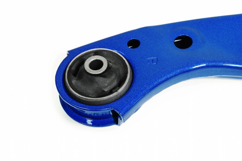 The front lower control arms feature OE design with improved construction and materials. Made of ED coated and painted high quality stamped steels, these arms offer superior strength and durability. The high quality harden rubber bushings equipped also provide greater handling response over the factory components.