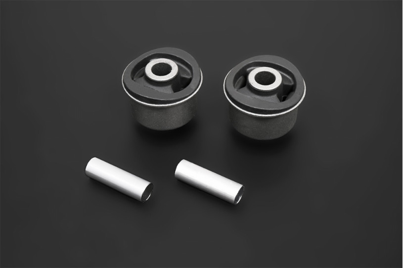 The harden rubber bushings are made of high strength and anti-crack rubber materials to offer solid handling response and resistance to unwanted suspension movement during hard acceleration, braking and cornering.