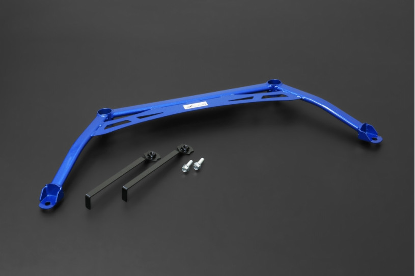Hardrace front lower 4-point brace features high strength tubular steel alloy construction. This brace will reduce vehicle chassis flex and deflection to increase the rigidity of your car under high speed driving and hard cornering, resulting in better and quicker handling response.