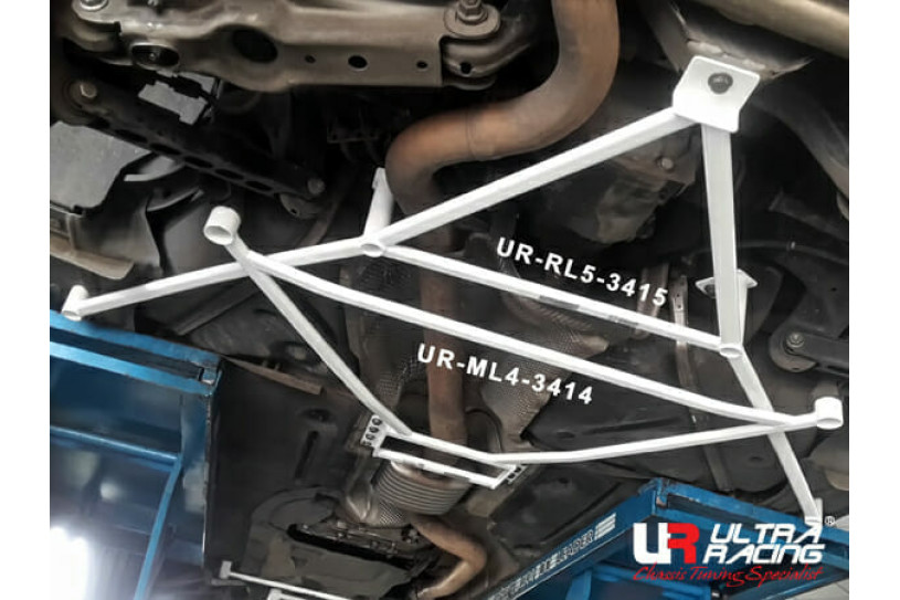 AFTER install Ultra Racing’s middle lower bar / middle member brace on car BMW X1 E84 (2009-2015): Ultra Racing’s middle lower bar will stabilize the weight transfer between front and rear, it can also minimize the damage from side impact.