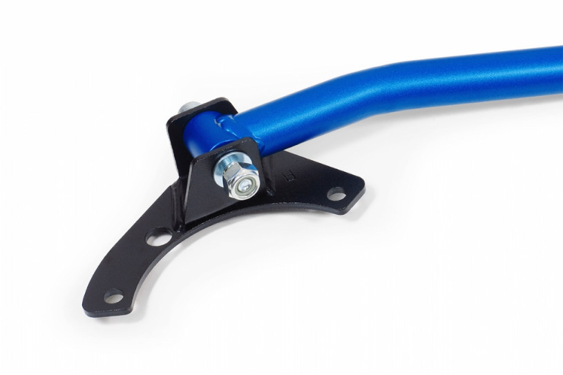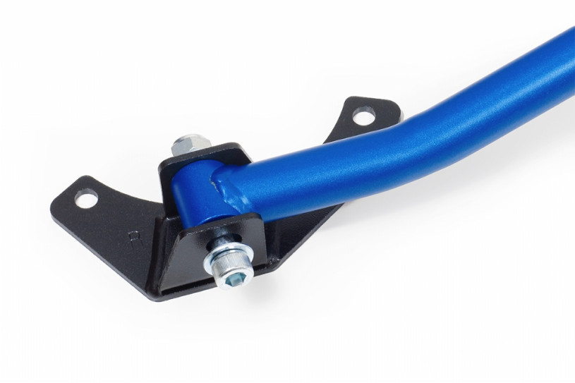 The front strut brace features ED coated and painted high-strength steel alloy tubular center bar. By tying the strut towers together, the brace capably eliminate lateral body deflections and maintain proper suspension geometry under high speed driving and hard cornering, offering a more precise and connected handling response.