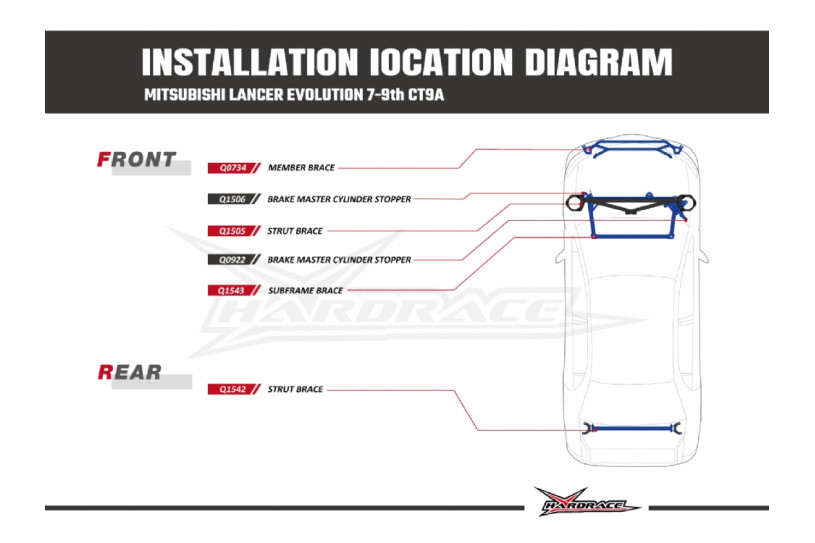 Mitsubishi Lancer Evo 7-9th CT9A Rear Strut Brace Hardrace Q1542