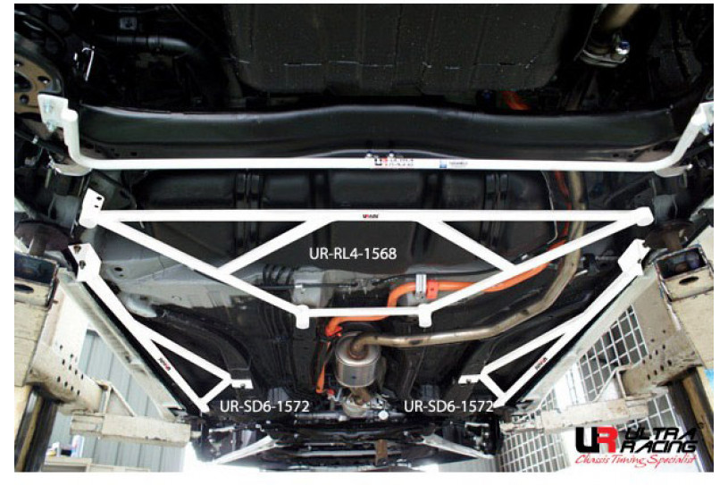 AFTER install Ultra Racing’s strut bar and lower arm bar to car Honda CRZ 1.5 (2011): Equip with the Ultra Racing’s strut bar and lower arm bar, both side shock of impact will be neutralized.