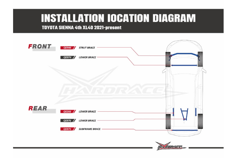 Rear Subframe Brace Toyota Sienna 4th XL40 Hardrace Q0975