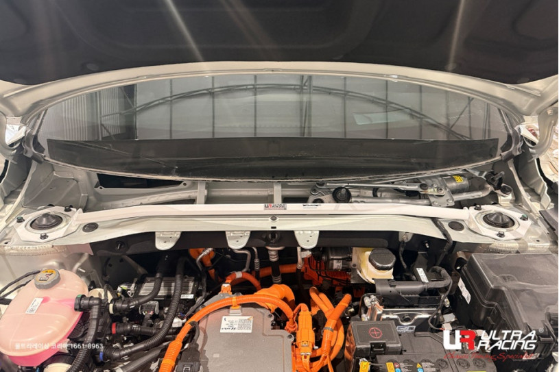 AFTER install Ultra Racing’s strut bar and lower arm bar to car Kia EV3: Equip with the Ultra Racing’s strut bar and lower arm bar, both side shock of impact will be neutralized.