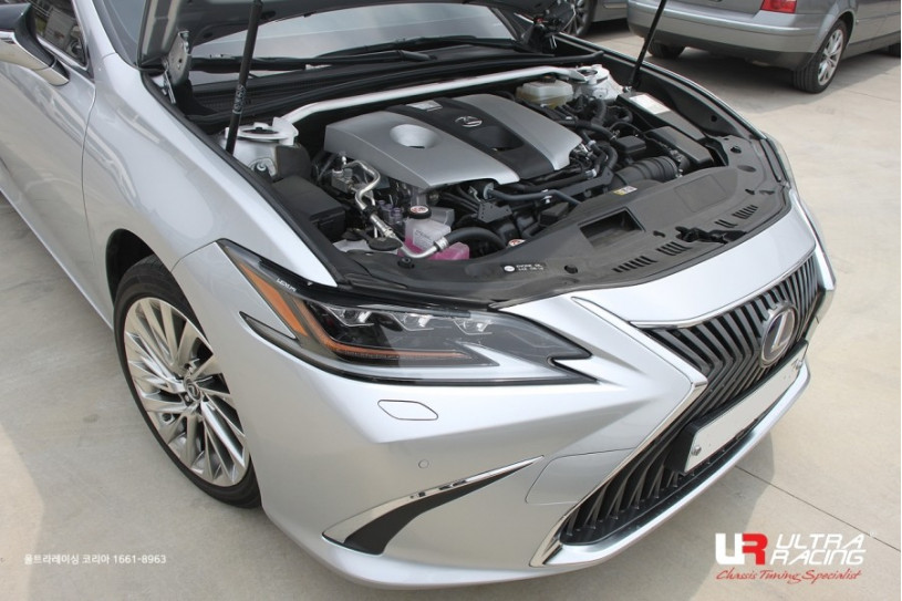 AFTER install Ultra Racing’s strut bar and lower arm bar to car Lexus ES XZ10 (2019-2024): Equip with the Ultra Racing’s strut bar and lower arm bar, both side shock of impact will be neutralized.