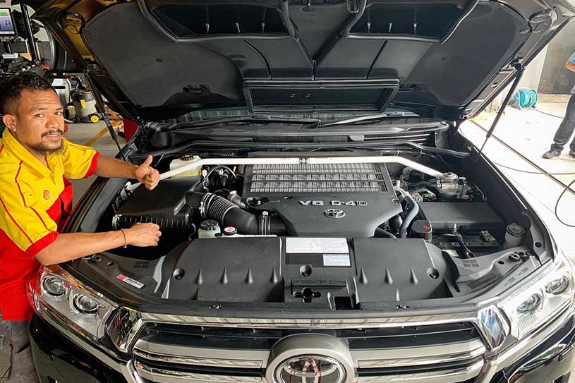 AFTER install Ultra Racing’s strut bar and lower arm bar to car Toyota Land Cruiser 200 (2008-2021): Equip with the Ultra Racing’s strut bar and lower arm bar, both side shock of impact will be neutralized.