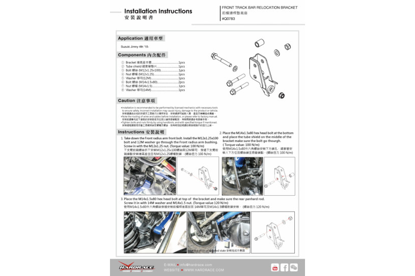 Suzuki Jimny 4th 2018+ Front Panhard Rod Extension Bracket Hardrace Q0783 - Installation Guide.