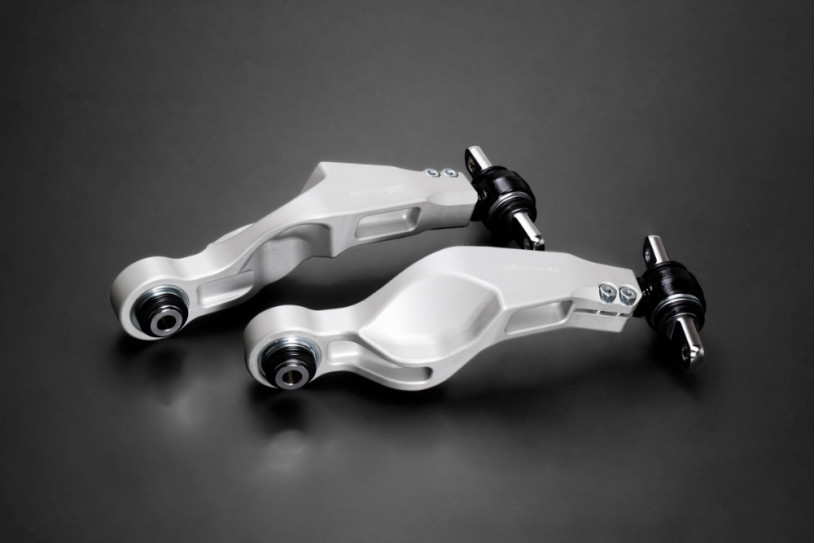 The camber kit allows fine adjustments to the rear end camber setting of the vehicle. It can either help maximize wheel contact patch to improve cornering grip or get your car back to original alignment specs after lowering to prevent uneven tyre wear. The arms are made of anodized CNC billet aluminum alloys to offer highest durability and strength but remain lightweight. The premium quality pillow ball bearings equipped also provide much more precise and solid handling response over the factory components.