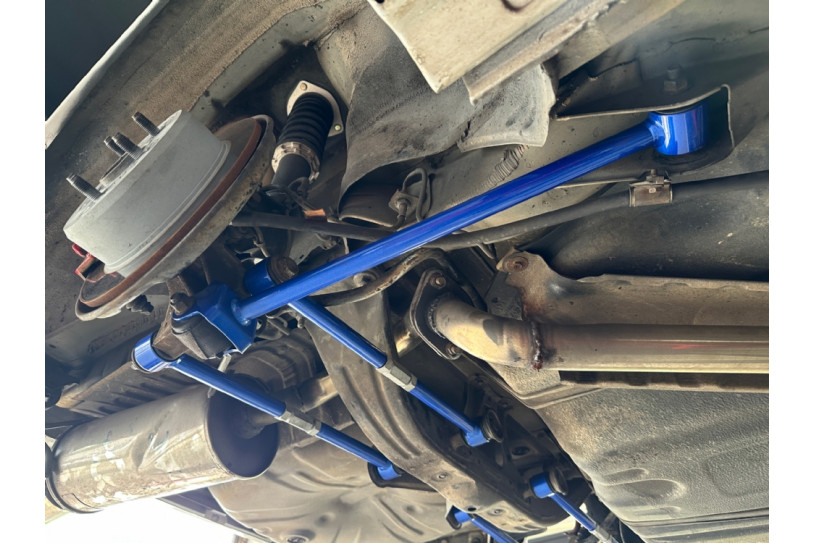 Rear trailing arm made of unique high density steel, provide excellent stability during high speed driving or hard cornering.
