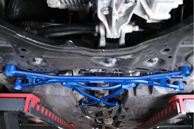 HARDRACE is proud to announce the new front lower 4-point brace for GR Corolla. This brace will reduce vehicle chassis flex and deflection to increase the rigidity of your car under high speed driving and hard cornering, resulting in better and quicker handling response.