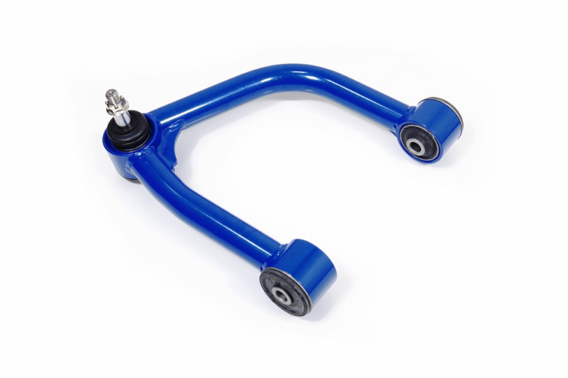 The front upper arms utilize built-in caster increase and ball joint angle change design to correct susepension geometry for lifted cars, allowing greater articulation and significantly improve off-road performance. They also feature high strength steel tubular construction with premium quality greasable CR-MO ball joints and harden rubber bushings to offer superior durability and serviceability along with solid driving response.