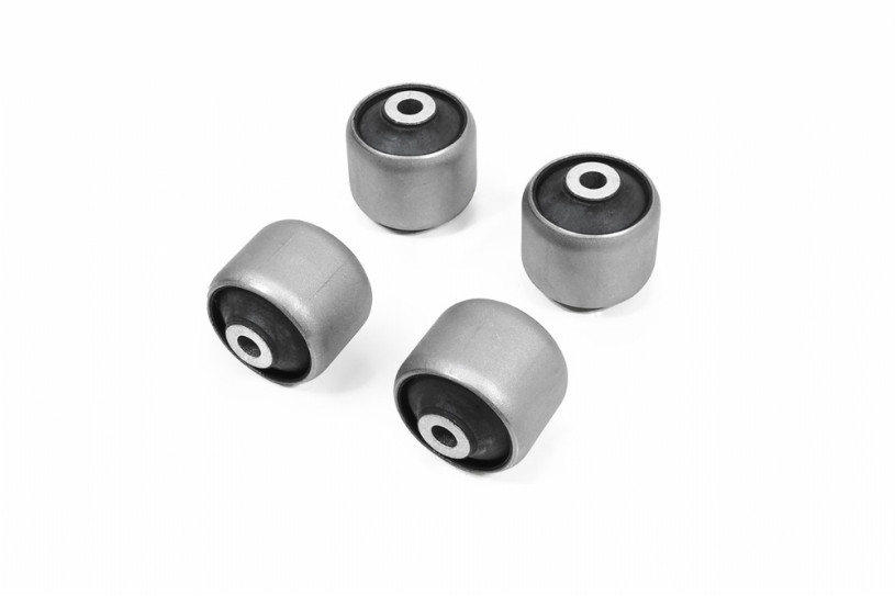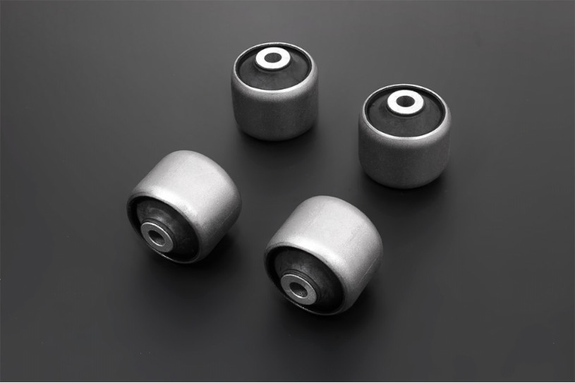 Harden rubber bushings are made of high strength and anti-crack rubber materials to offer solid handling response and resistance to unwanted suspension movement during hard acceleration, braking and cornering.