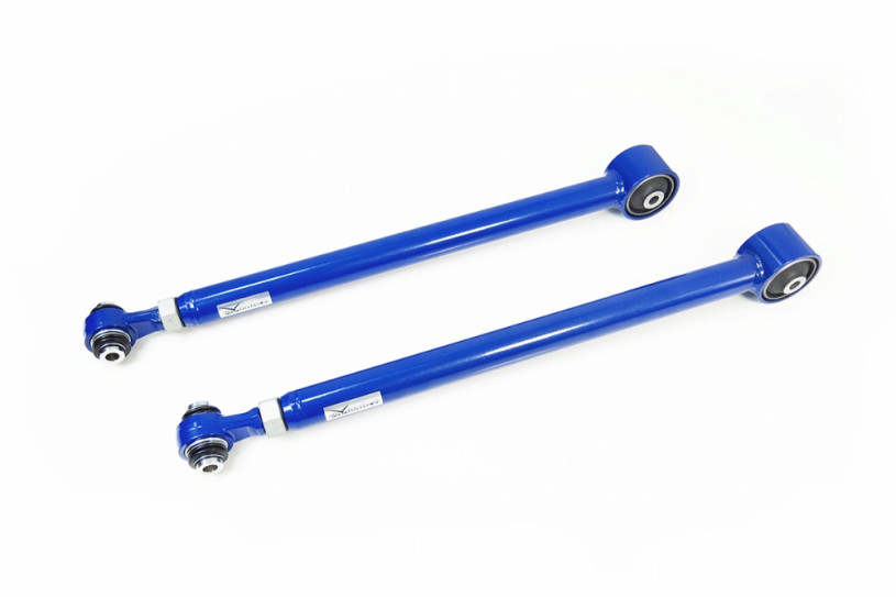 Suspension lowering or lift cause axle housing to rotate. This not only affects suspension articulation but also results in poor driving stability and vibrations due to altered pinion angle. Adjustable arms help set axle to factory alignment spec for greater handling performance and lifespan on the propeller shaft joint bearings. These arms feature high strength tubular steel alloy construction to withstand extensive loads and harshest driving conditions. The harden rubber bushings and pillow ball bearings equipped also provide significantly better handling response over the factory components.