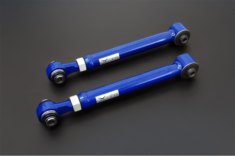 Suspension lowering or lift cause axle housing to rotate. This not only affects suspension articulation but also results in poor driving stability and vibrations due to altered pinion angle. Adjustable arms help set axle to factory alignment spec for greater handling performance and lifespan on the propeller shaft joint bearings. These arms feature high strength tubular steel alloy construction to withstand extensive loads and harshest driving conditions. The harden rubber bushings and pillow ball bearings equipped also provide significantly better handling response over the factory components.