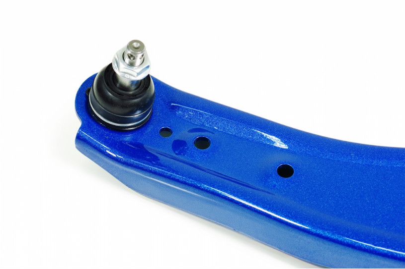 The front lower control arms feature OE design with improved components for better performance. Made of ED coated and painted high quality stamped steels, these arms offer superior strength and durability. The high quality harden rubber bushings and ball joints equipped provide greater handling response over the factory components.