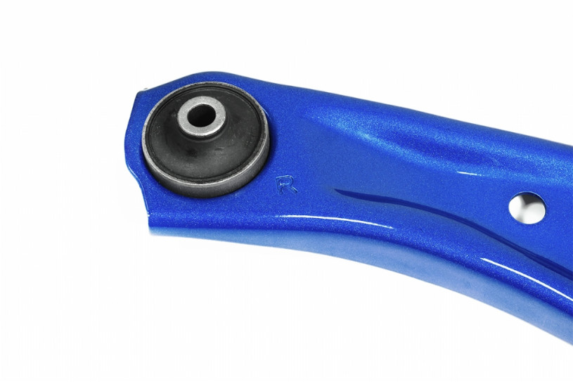 The front lower control arms feature OEM stamped steel design with additional reinforcement plates to effectively improve structural rigidity. The surface is protected by ED coating and painting, ensuring excellent resistance to rust and corrosion. Equipped with high-quality, hardened rubber bushings, these control arms deliver a more precise handling response and a more solid chassis feedback compared to the OEM components.