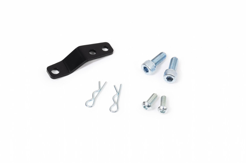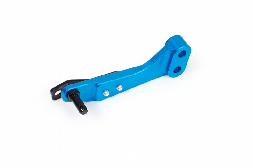 The quick shifter bracket is designed to bolt to the OEM shifter crank at the gearbox to relocate the cable mounting. By moderately shortening the lever length, the fore-aft shifting throw is reduced by 30% approximately. This amount allows quicker and more precise gear changes while not making shifting feel too heavy and notchy. The bracekt features CNC machined billet aluminum contruction with anodized finish, offering superior strength, durability and remain lightweight.