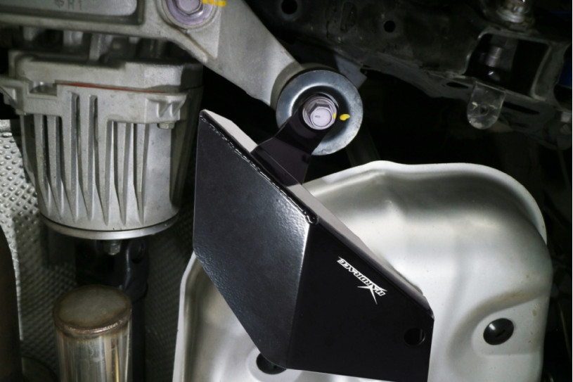 The rear differential cooling deflector is designed to improve cooling efficiency by directing air passing underneath the chassis towards the differential, allowing better operating temperature control under hard driving conditions. The deflector is made from powder coated aluminum alloy for superior strength, durability and remain lightweight.